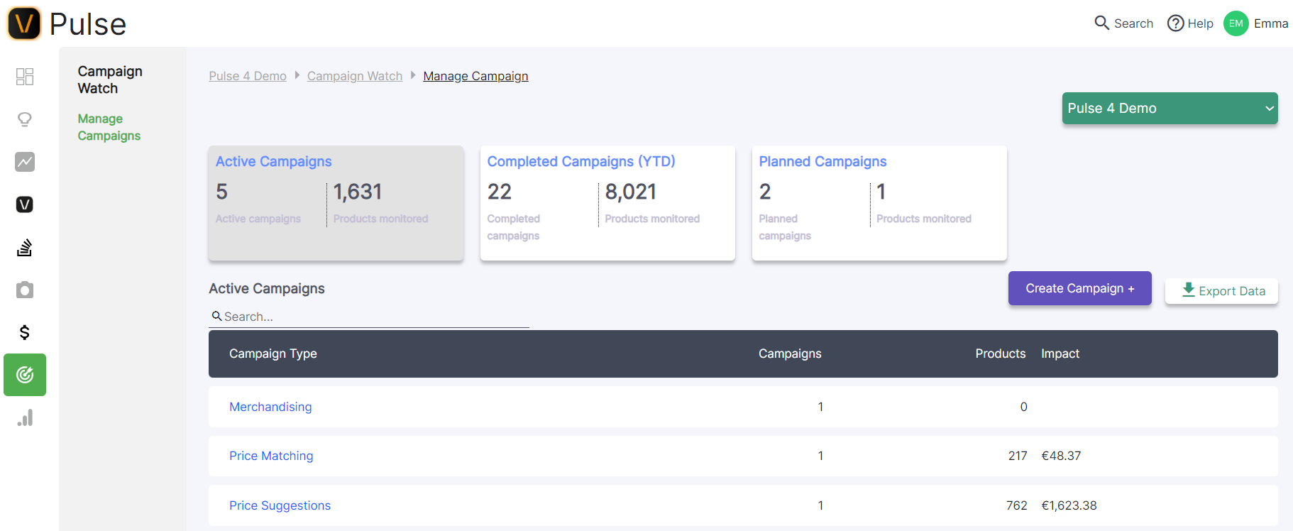 Your campaign is now live! You can make changes at any point by navigating to 'Campaigns' from the main Pulse menu. Simply click into any of your campaigns to see how the products in the campaign are performing. You'll be able to see right away if your Spotlight messaging has had a positive impact on your sales!