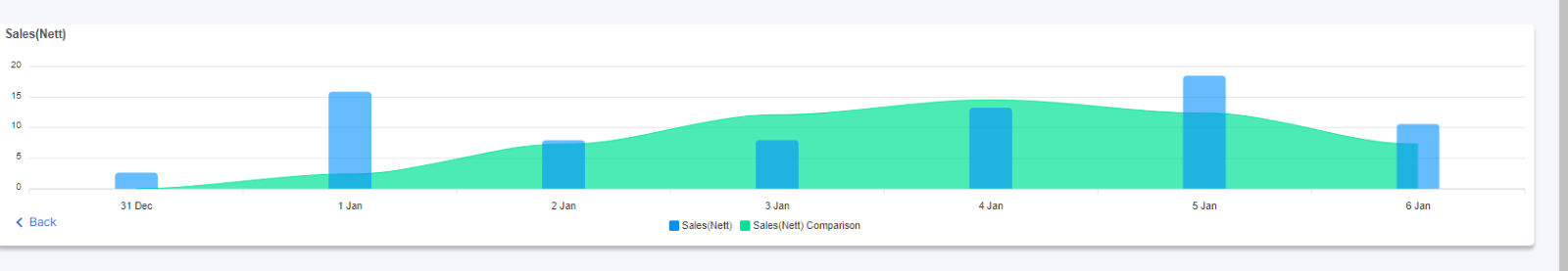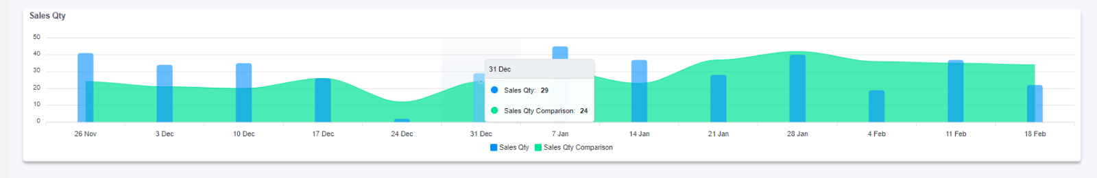 By default the graph shows the week on week trend of the product, but you can click on any of the bars to drill down into a specific week.