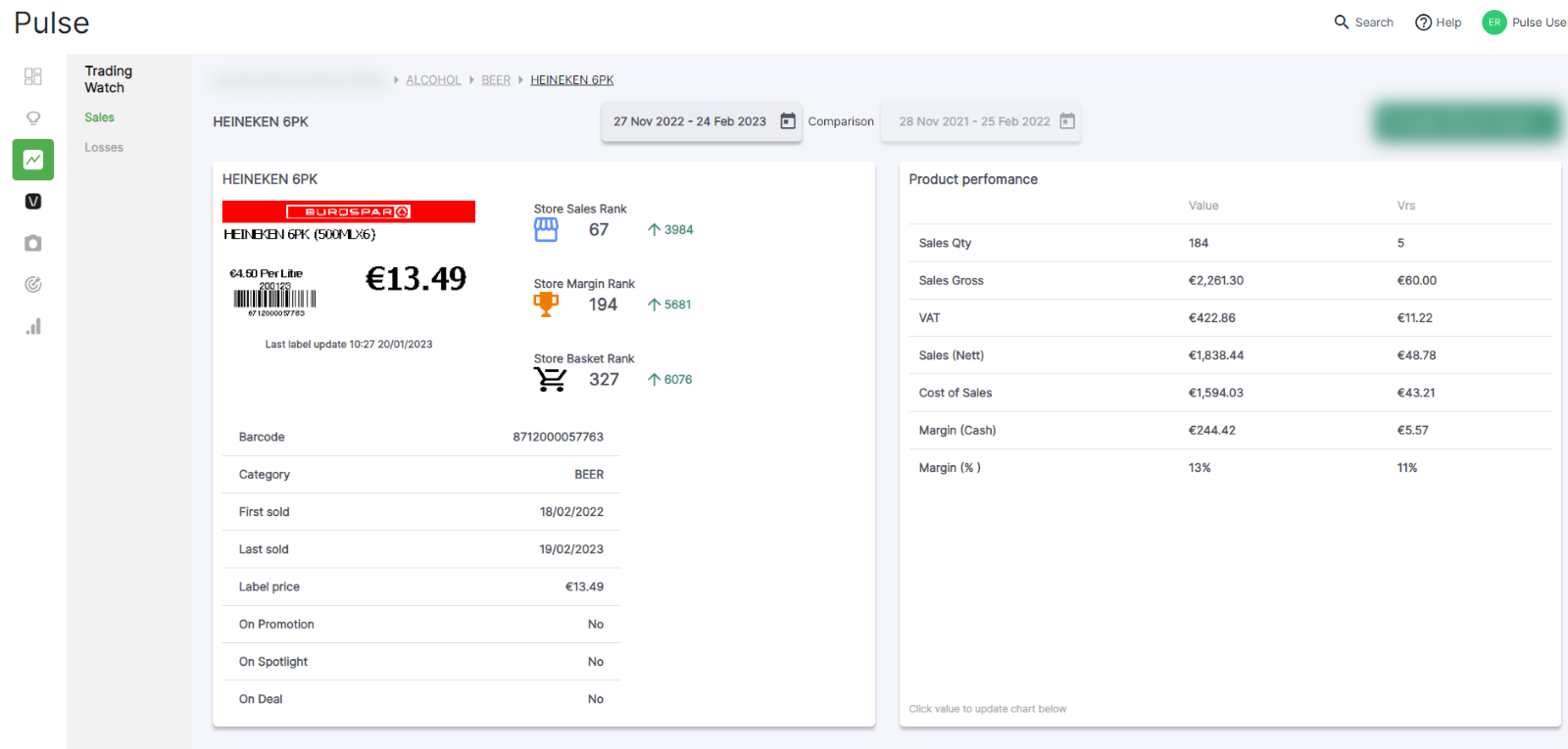 The product page has all the relevant KPIs and information for a single product, but will also display the ESL image if the product is linked to a label.