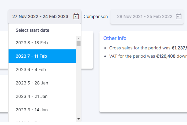 As mentioned above, you can customise the time range being analysed, and the comparison period will update automatically.