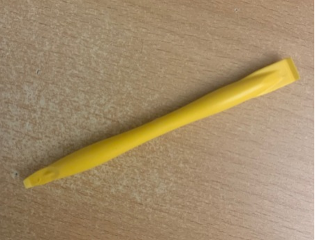 remove the camera. - Slide open the cover of the camera. To help with this, you should have received the pen below. Put the pen into the slot of the cover and slide the cover using your finger. Remove the old battery and insert the new battery, ensuring it is facing the right way.