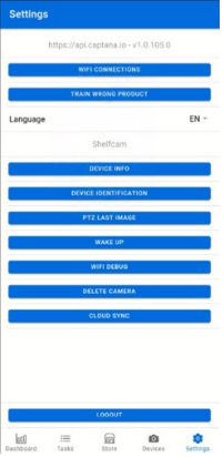 - Using the Captana app, tap settings in the bottom nav bar, then device info.