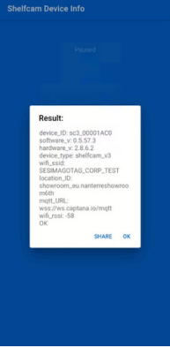 - Go to Devices > tap the ‘+’ > tap add Shelfcam > select the location SSID